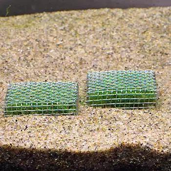 準(zhǔn)備水草(這里用的是鹿角苔)和不銹鋼網(wǎng),將鹿角苔分成與網(wǎng)片大小相同,如下圖